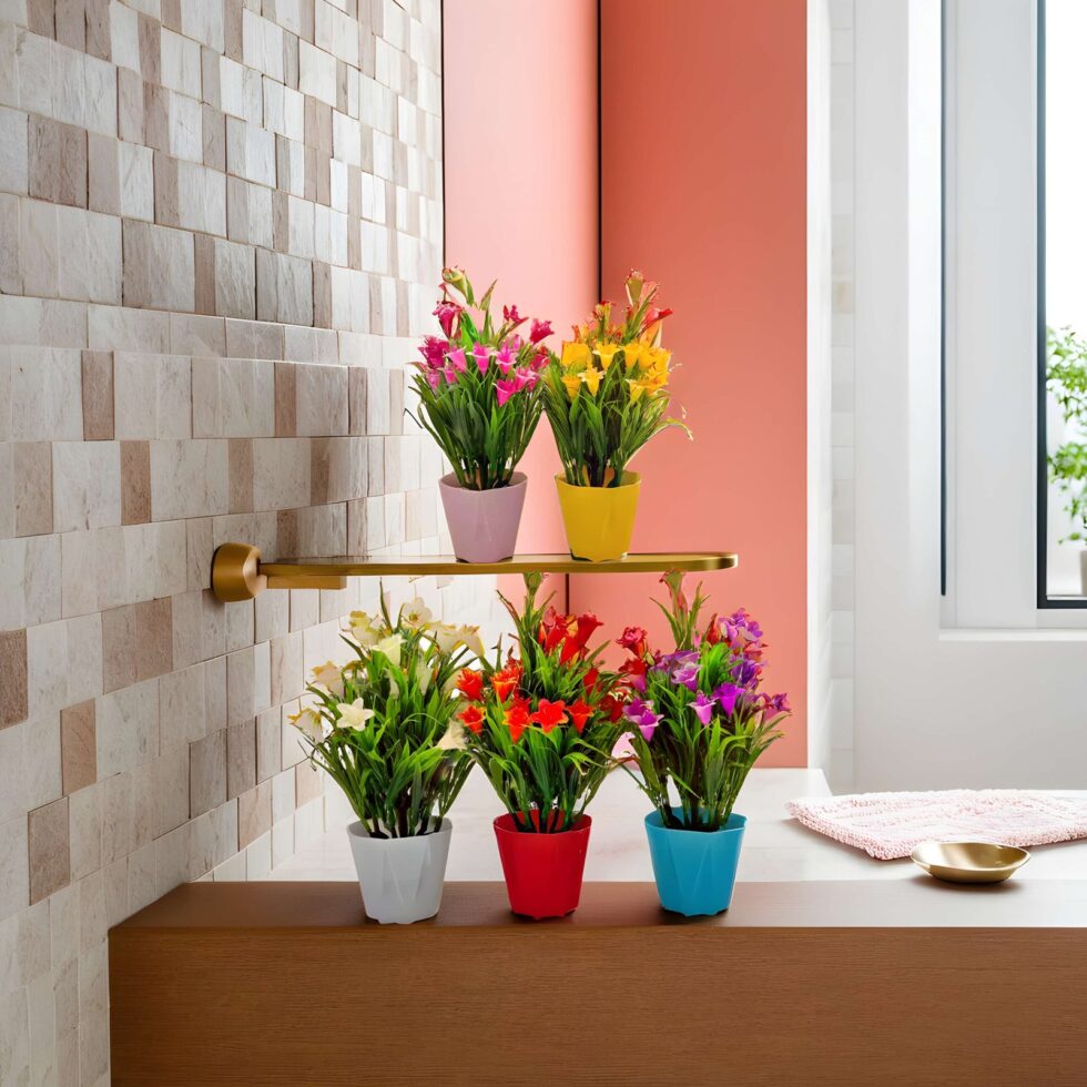 RANI’S CRAFTS Plastic Small Mini Set Of 5 Artificial Plant With Pot Artificial Potted Plants Set Of 5 Home Decor Indoor Small Plants Pot Flowers For Table Desk Decoration (RV-AP4)